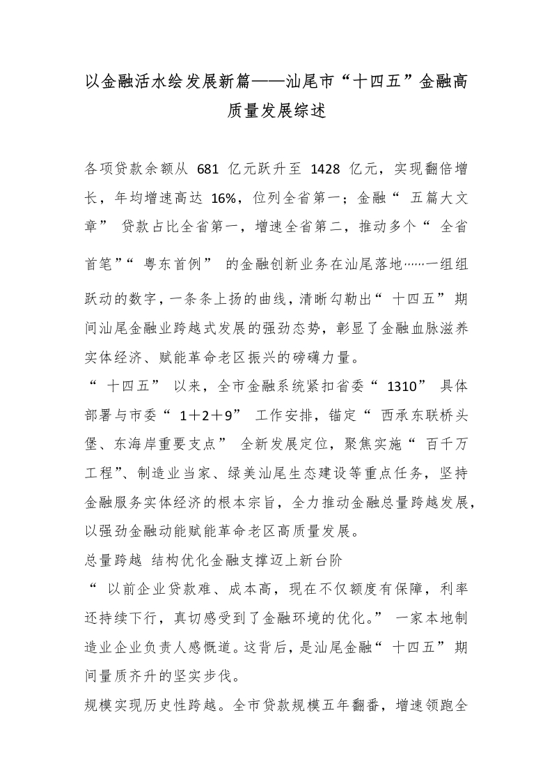 首页人民时评以金融活水绘发展新篇——汕尾市“十四五”金融高质量发展综述
