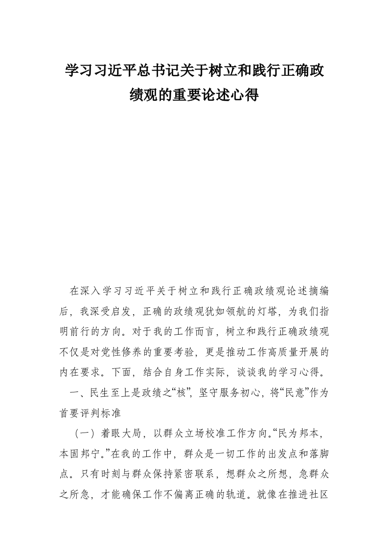 - 学习《***关于树立和践行正确政绩观论述摘编》心得