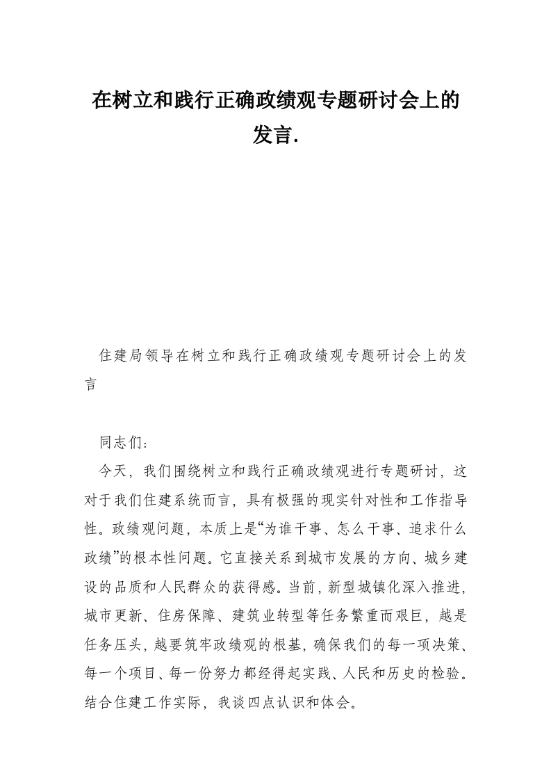 在树立和践行正确政绩观专题研讨会上的发言.