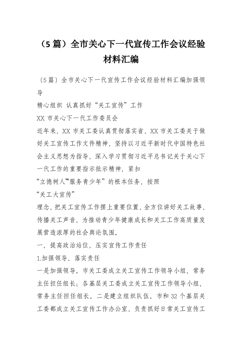 (5篇)全市关心下一代宣传工作会议经验材料汇编