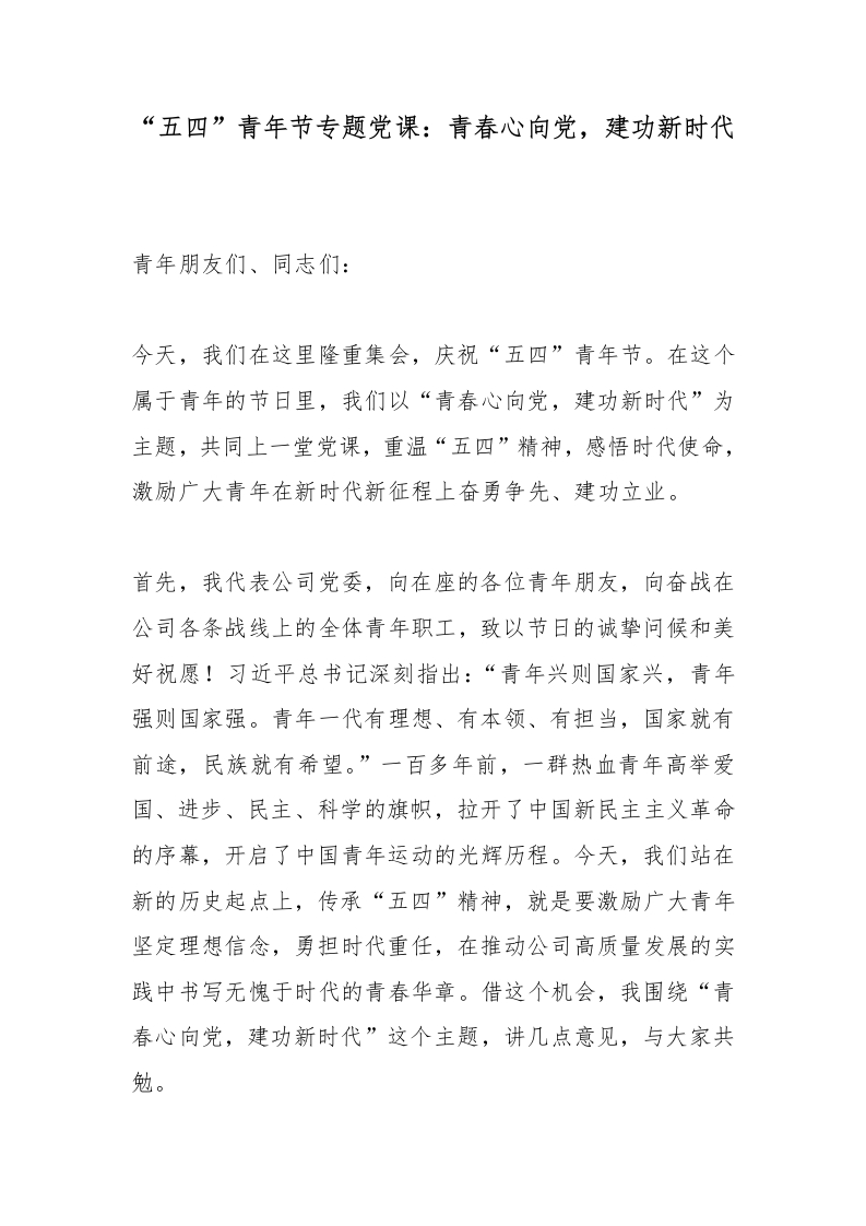 “五四”青年节专题党课:青春心向党,建功新时代(1)
