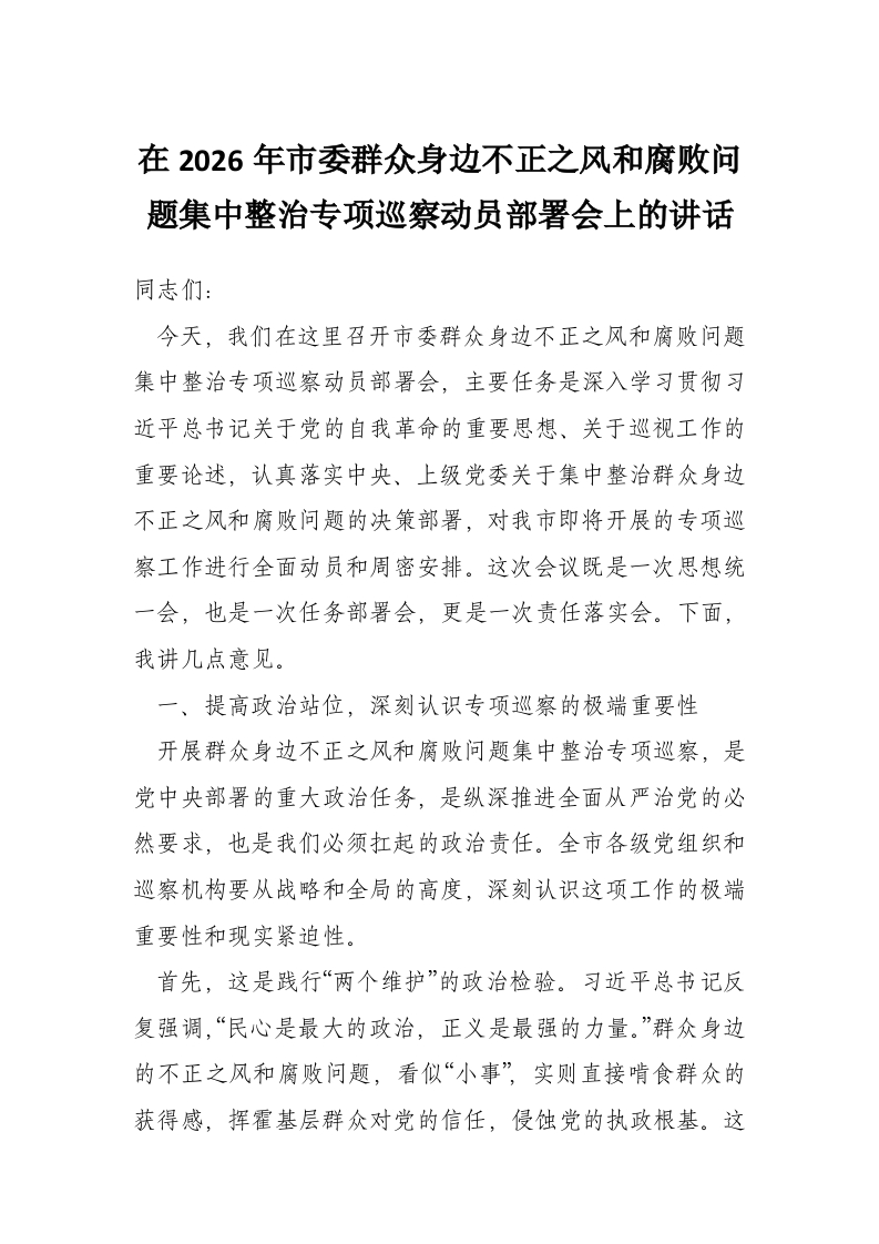 - 在2026年市委党建引领基层高效能治理暨全市组织工作会议上的讲话