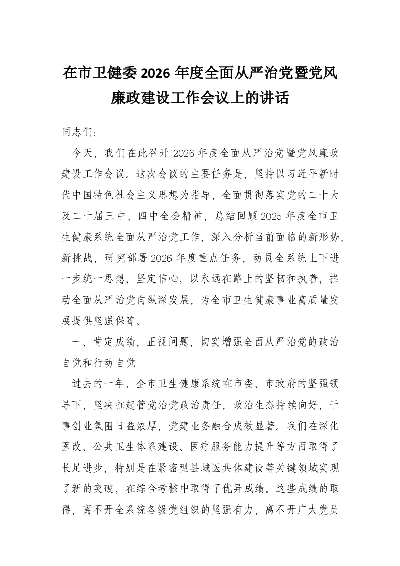 - 在市总工会2026年度全面从严治党专题会议上的讲话