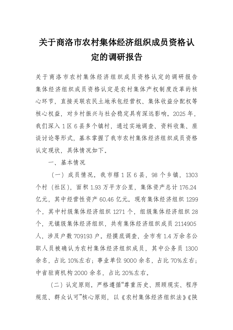 关于商洛市农村集体经济组织成员资格认定的调研报告