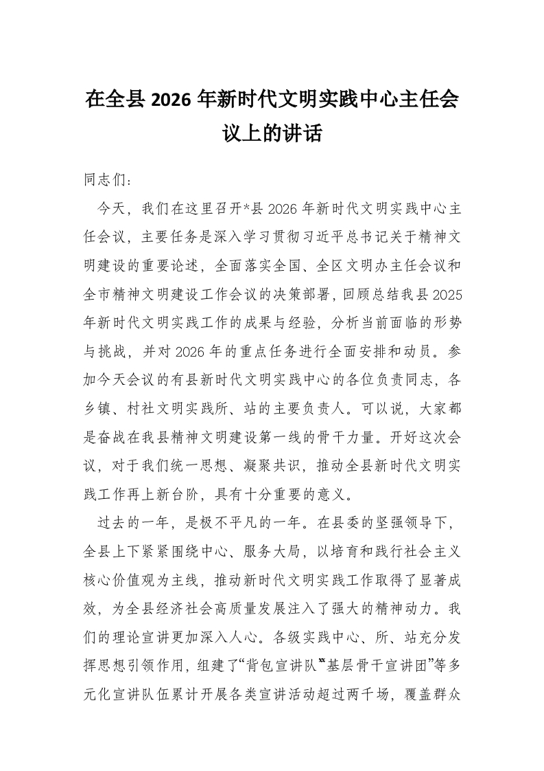 在全县2026年新时代文明实践中心主任会议上的讲话