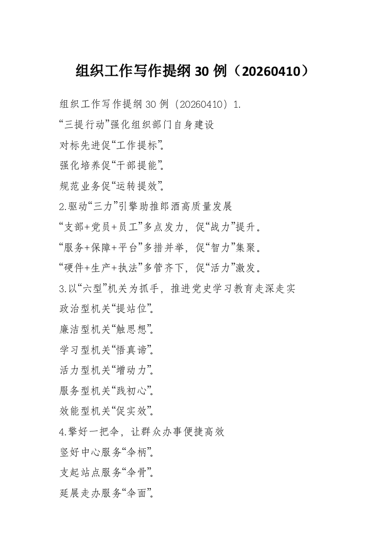 组织工作写作提纲30例(20260410)