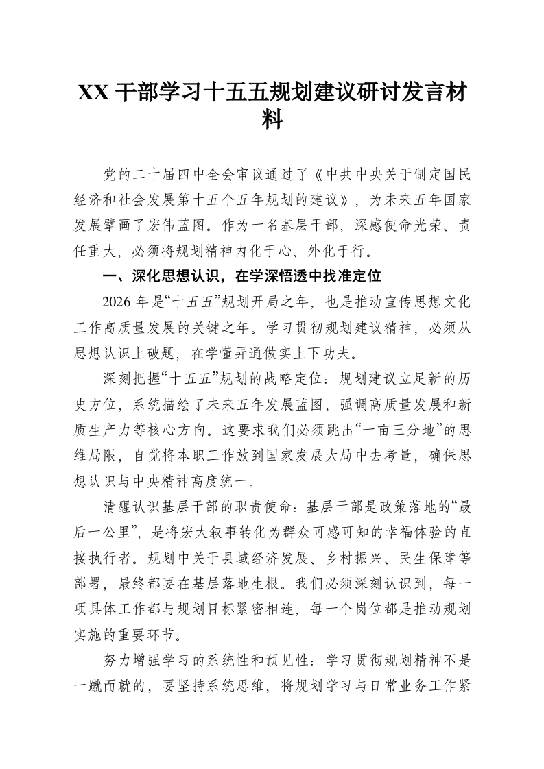 干部学习十五五规划建议研讨发言材料