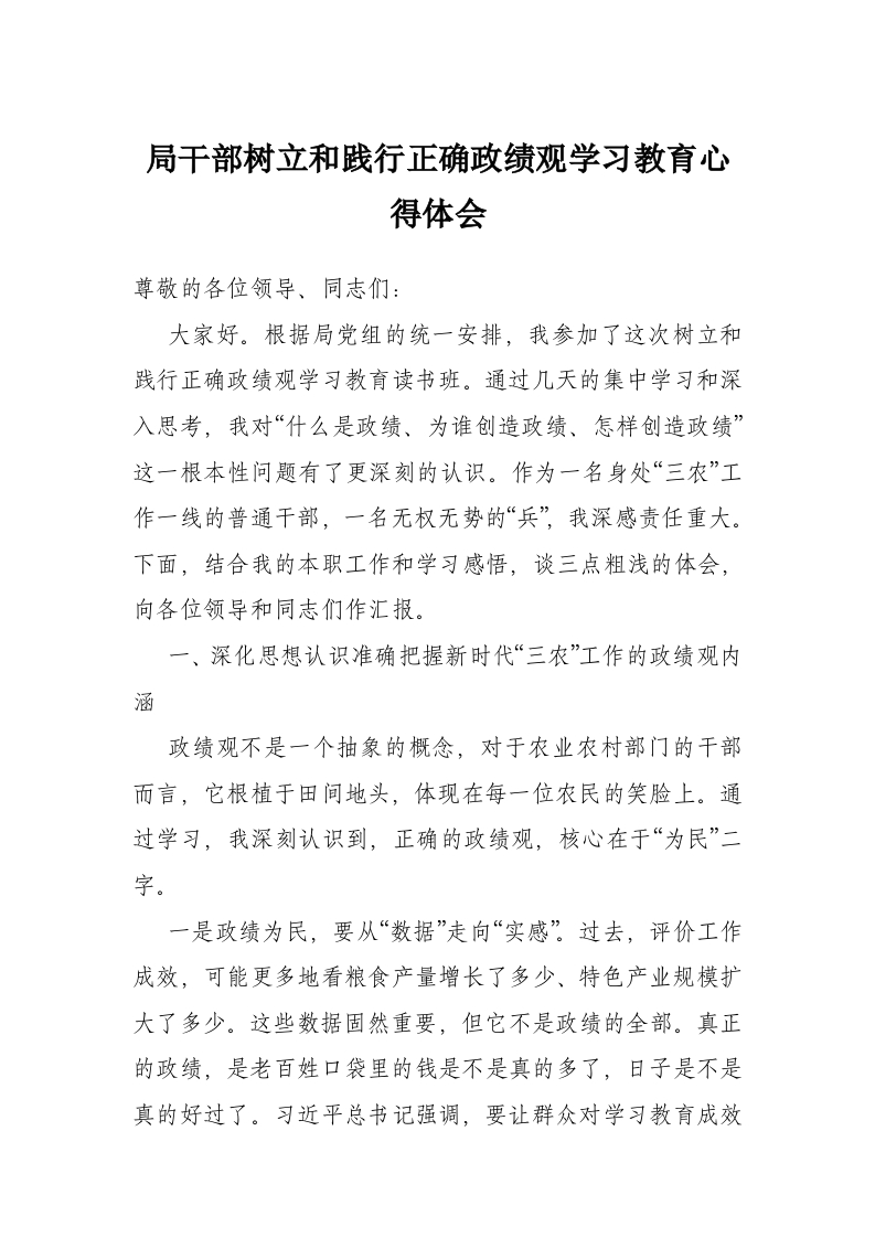 局干部树立和践行正确政绩观学习教育心得体会
