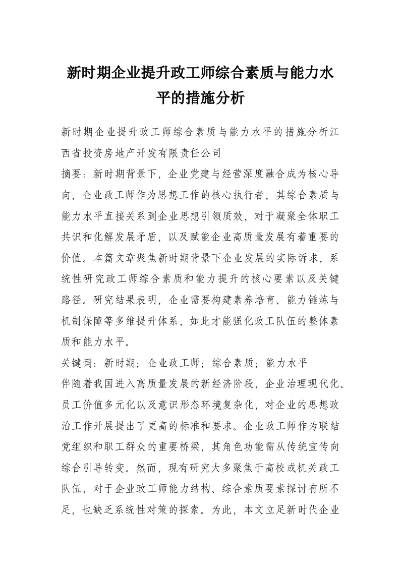 新时期企业提升政工师综合素质与能力水平的措施分析