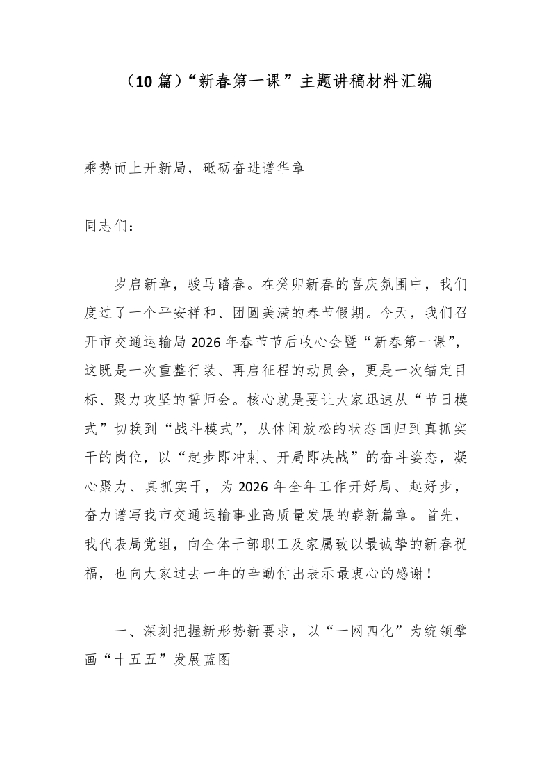 (10篇)“新春第一课”主题讲稿材料汇编