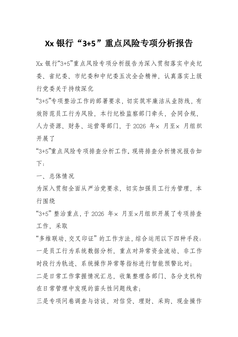 首页工作文档Xx银行“3+5”重点风险专项分析报告