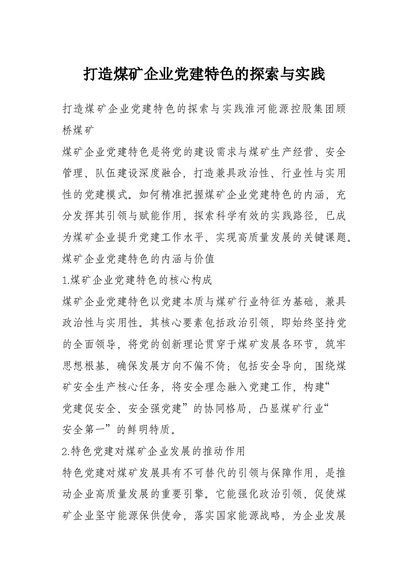 首页工作文档打造煤矿企业党建特色的探索与实践