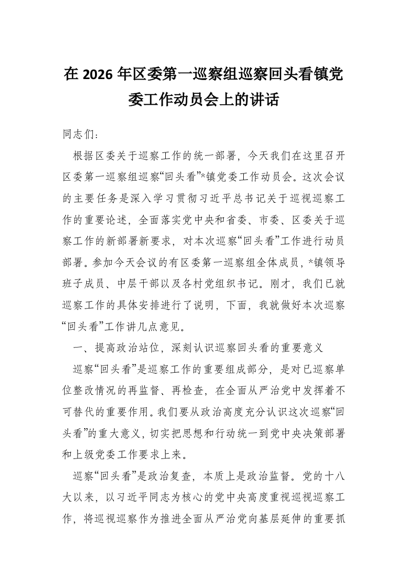 - 在2026年区委第一巡察组对民政局巡察回头看工作动员会议上的讲话