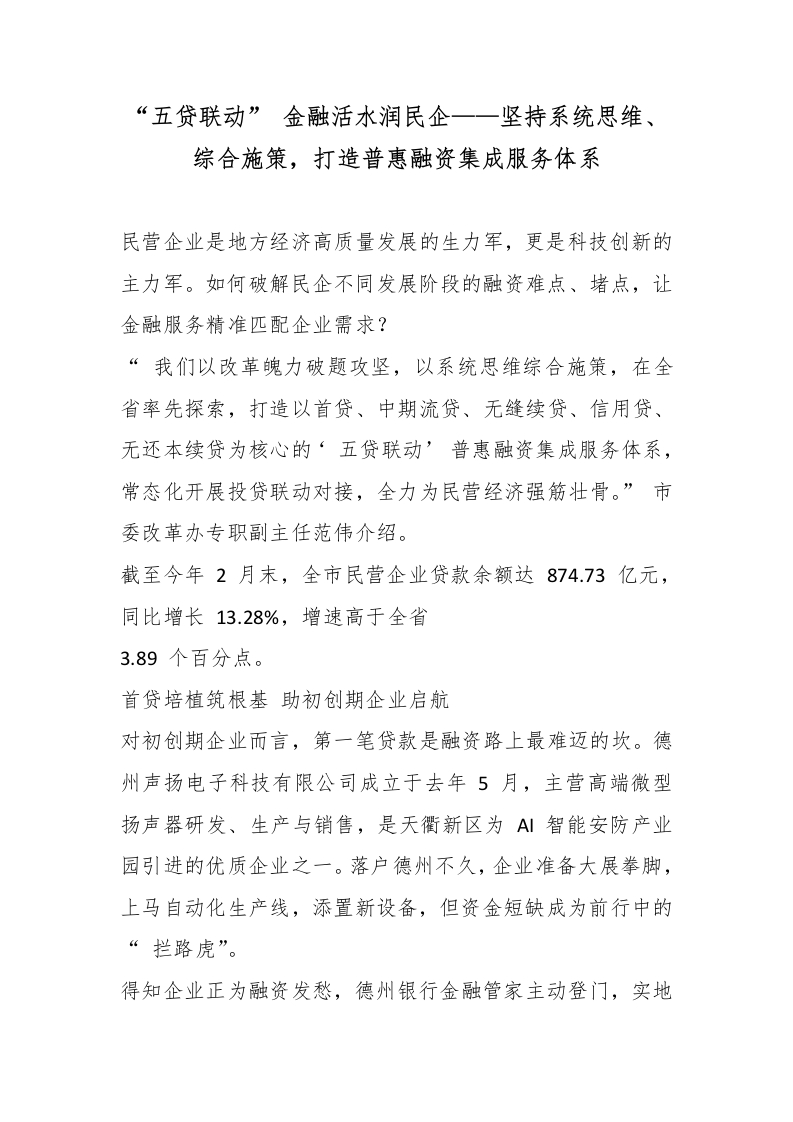 “五贷联动” 金融活水润民企——坚持系统思维、综合施策,打造普惠融资集成服务体系
