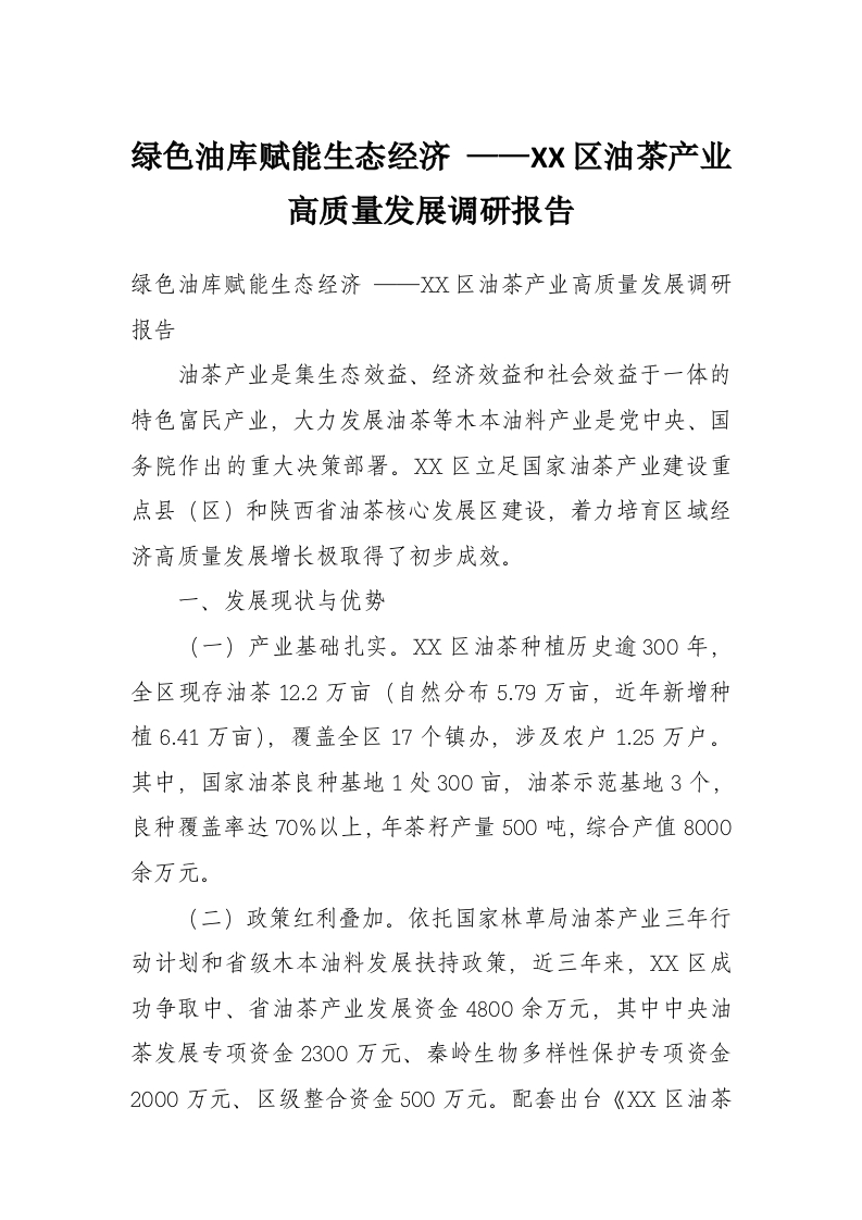 - 将军大道何以“将星云集”——关于XX市XX区打造产业科技创新集聚带的调查研究