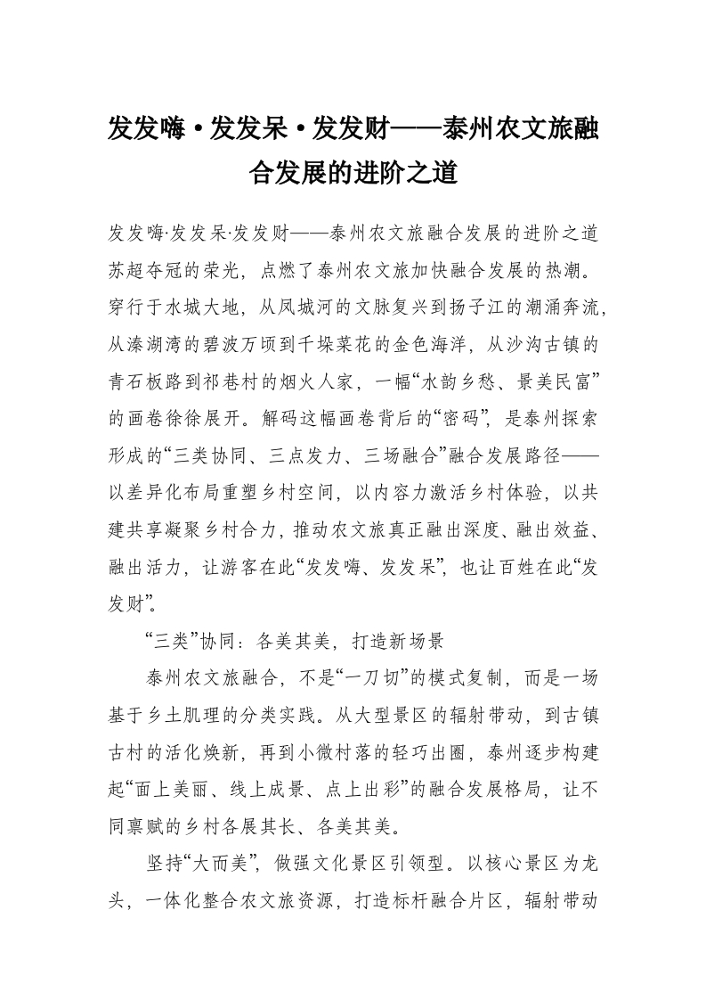 发发嗨·发发呆·发发财——泰州农文旅融合发展的进阶之道