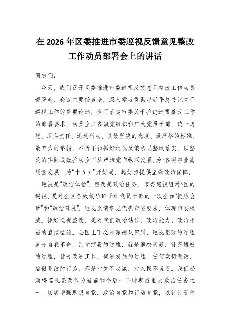 - 在区政协2026年全面从严治党暨党风廉政建设工作会议上的讲话