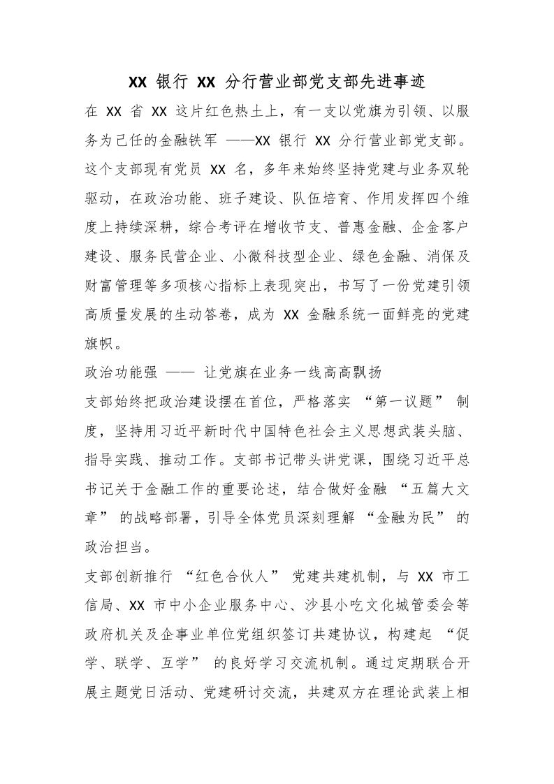 首页精选范文XX 银行 XX 分行营业部党支部先进事迹