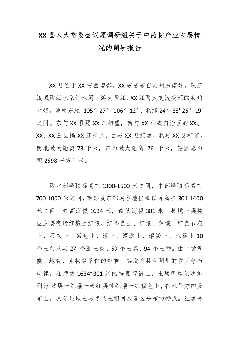 XX县人大常委会议题调研组关于中药材产业发展情况的调研报告(1)