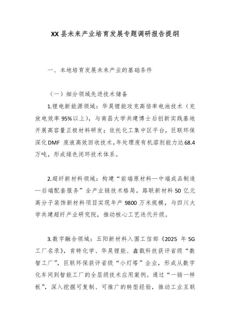 首页工作文档XX县未来产业培育发展专题调研报告提纲(1)