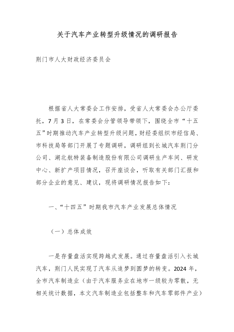 首页工作文档关于汽车产业转型升级情况的调研报告