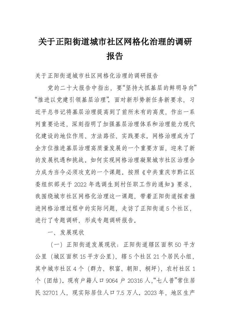 首页工作文档关于正阳街道城市社区网格化治理的调研报告