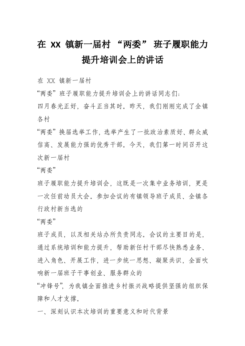 - 在 XX 镇 2026 年新一届村(社区)“两委” 班子成员能力素质提升培训班上的讲话