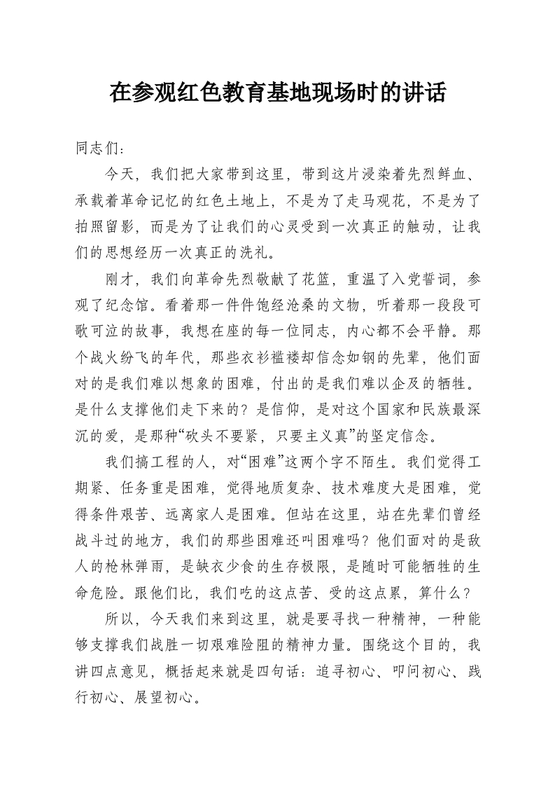 首页讲课讲稿在参观红色教育基地现场时的讲话
