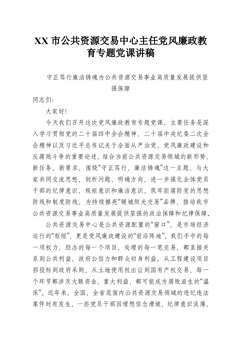 XX市公共资源交易中心主任党风廉政教育专题党课讲稿