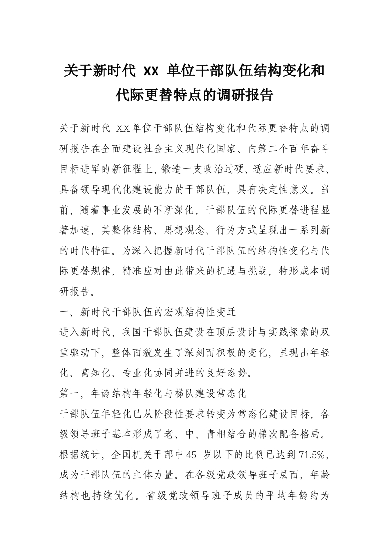 关于新时代 XX 单位干部队伍结构变化和代际更替特点的调研报告
