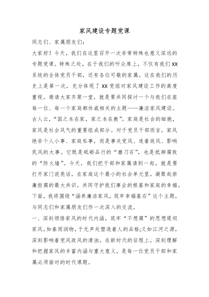 - 在XX公司廉洁家风建设座谈会上的讲话