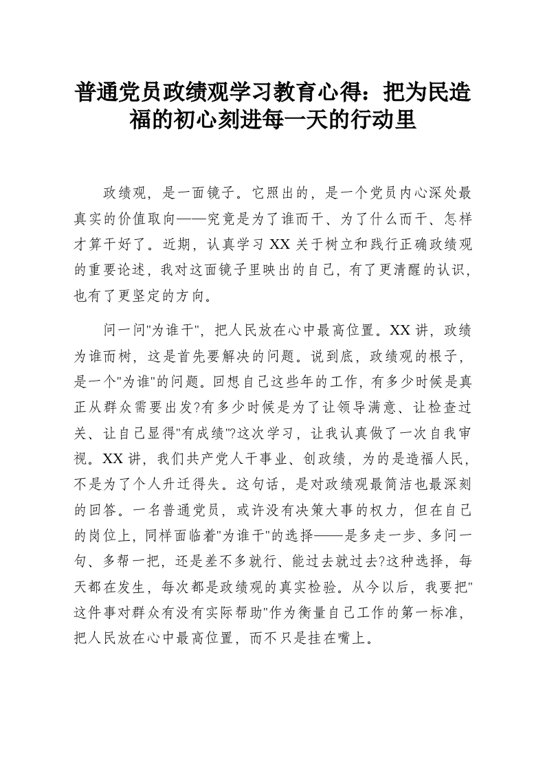 - 普通党员政绩观学习教育心得:在“显功”与“潜功”之间找准政绩的真正坐标