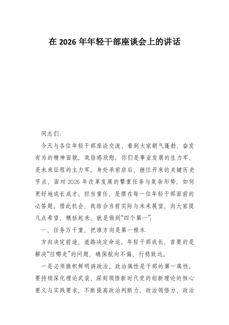 - 在2026年“五四”青年节年轻干部座谈会上的讲话提纲:激扬青春志 奋进新征程