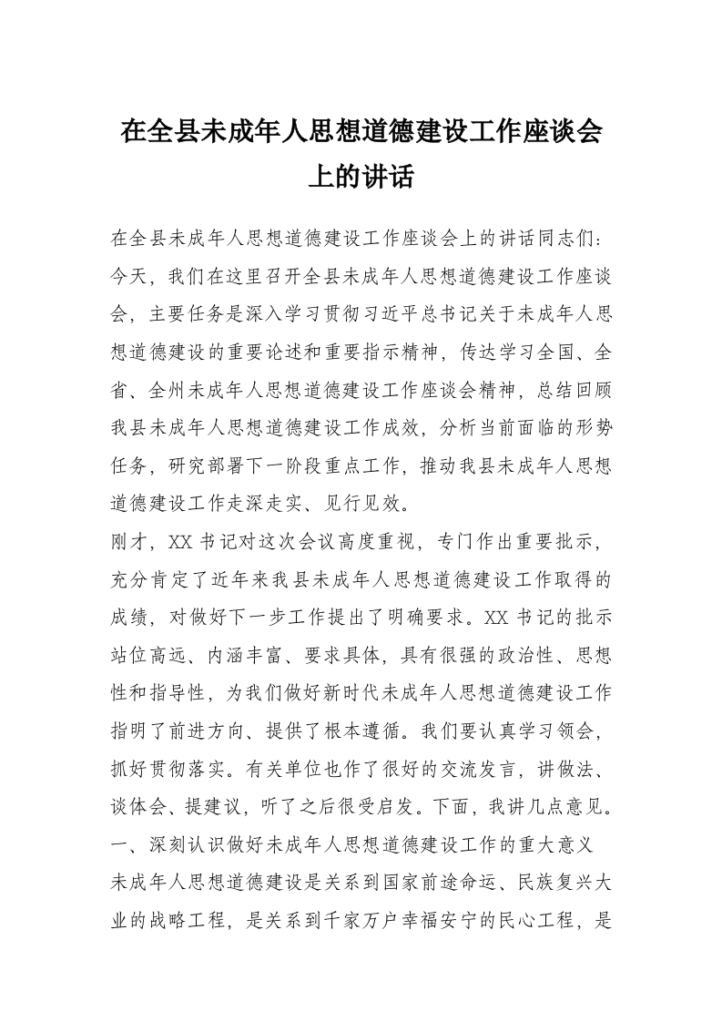 在全县未成年人思想道德建设工作座谈会上的讲话