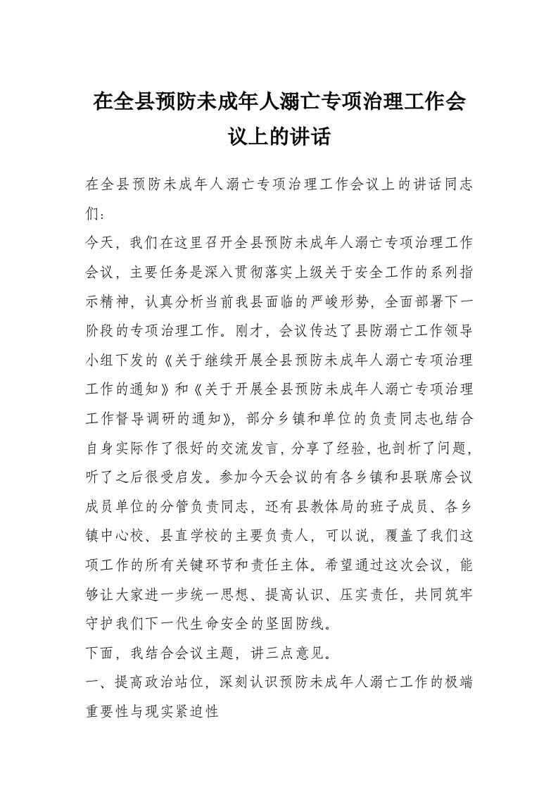 首页工作文档在全县预防未成年人溺亡专项治理工作会议上的讲话