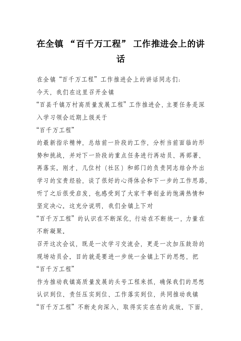 - 在全镇 2026 年第一季度宣传统战旅文工作部署会议上的讲话