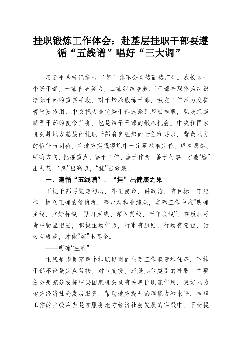 首页工作文档挂职锻炼工作体会:赴基层挂职干部要遵循“五线谱”唱好“三大调”