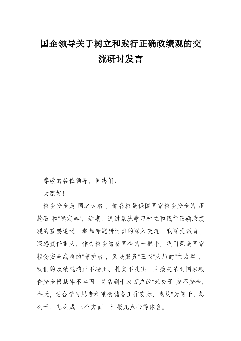 - 树立和践行正确政绩观交流研讨材料