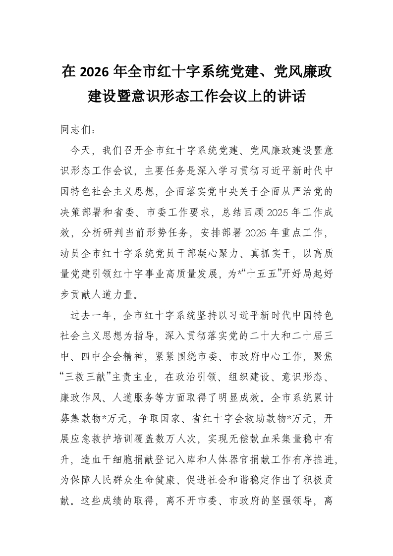 - 在市妇联2026年全面从严治党工作会议上的讲话
