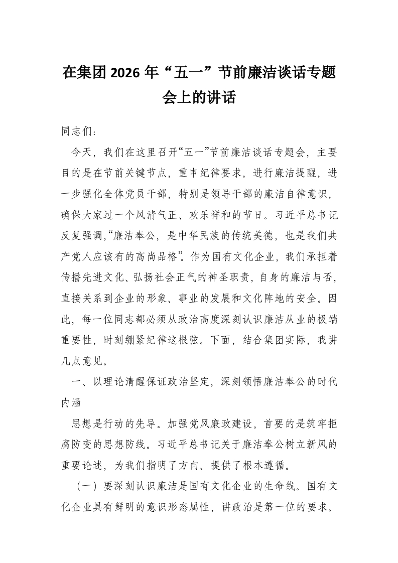 - 在集团公司“五一”“五四”表彰暨二季度工作会上的讲话