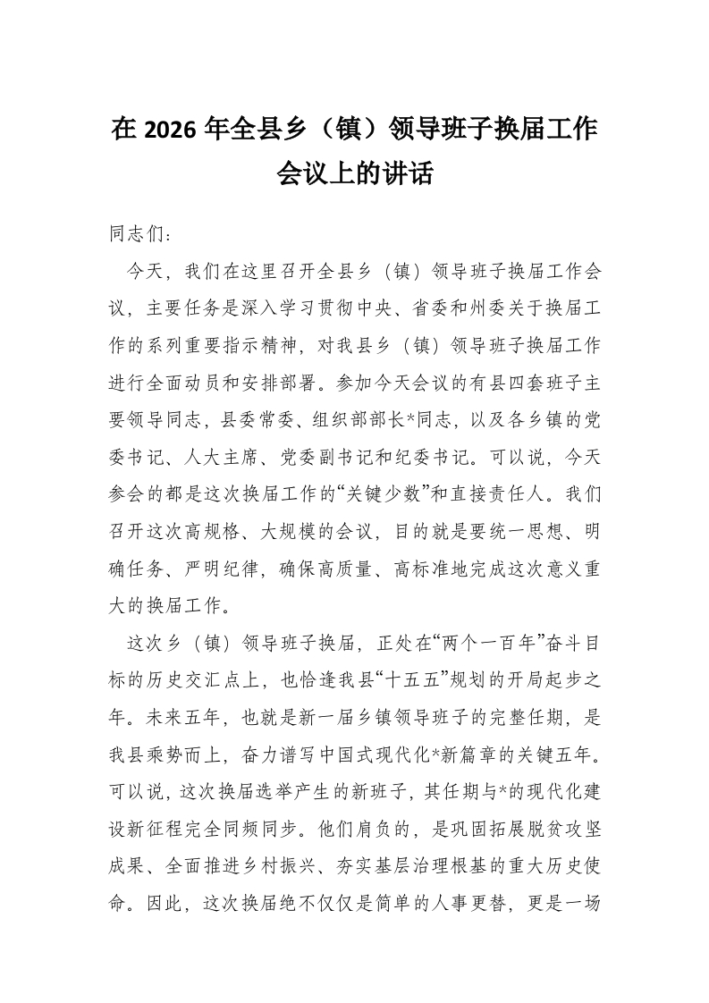 - 在2026年全县乡镇领导班子换届工作推进会议上的讲话