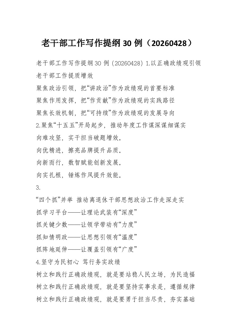 老干部工作写作提纲30例(20260428)