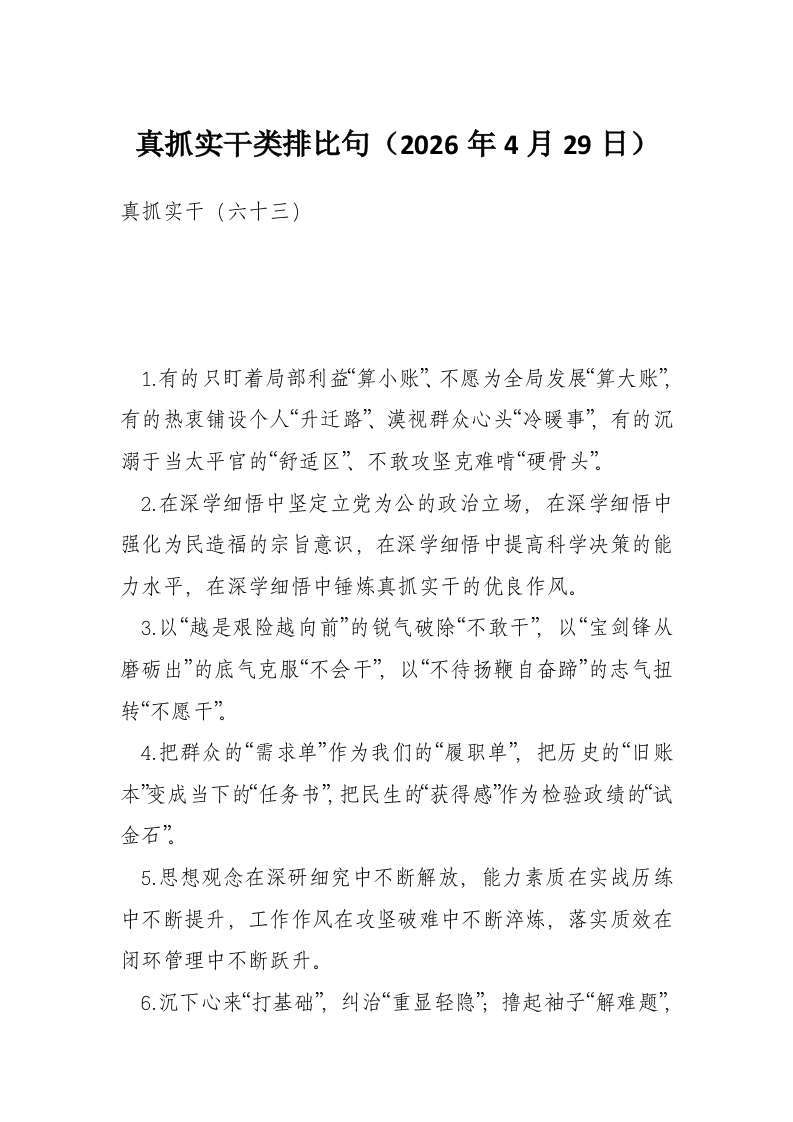 真抓实干类排比句(2026年4月29日)