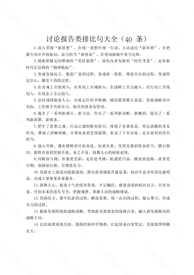 讨论报告类排比句大全(40条)