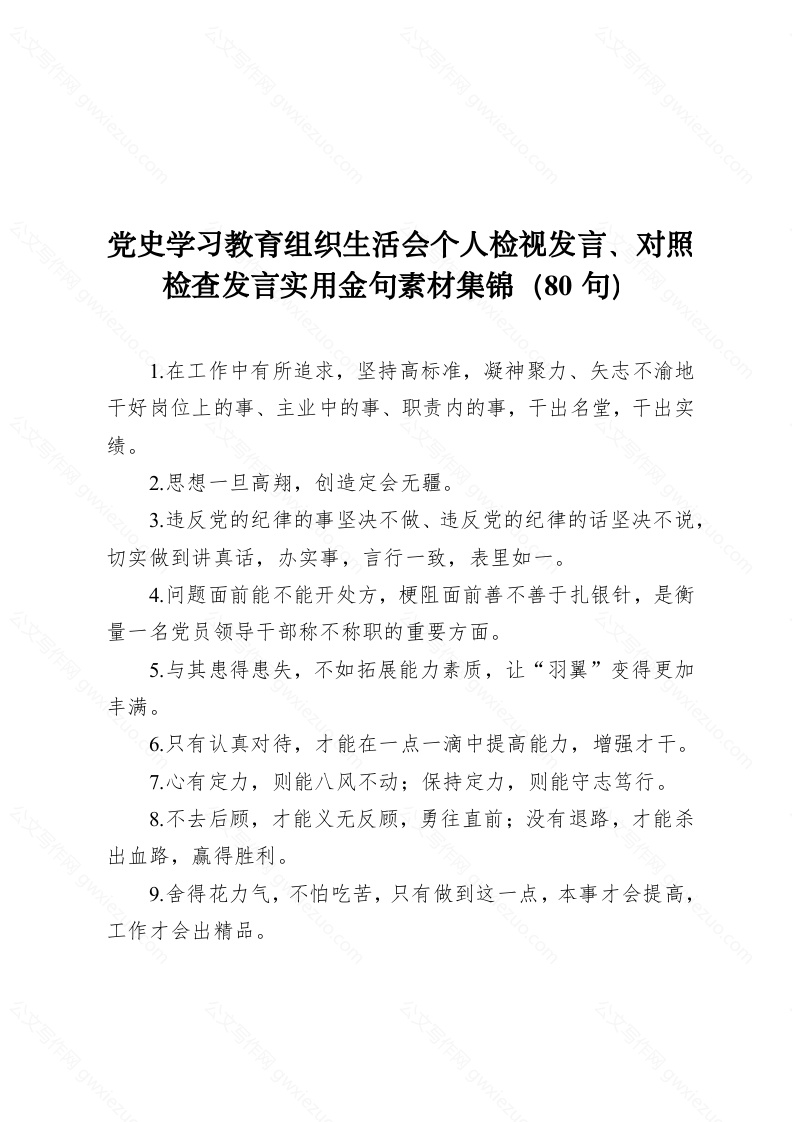 党史学习教育组织生活会个人检视发言、对照检查发言实用金句素材集锦(80句)