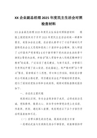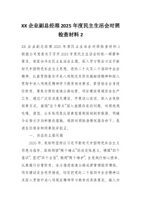 XX企业副总经理2025年度民主生活会对照检查材料2