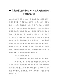 XX农发集团党委书记2025年度民主生活会对照检查材料