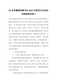 XX农发集团党委书记2025年度民主生活会对照检查材料2
