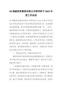 XX城建投资集团有限公司领导班子2025年度工作总结