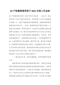 XX产投集团领导班子2025年度工作总结